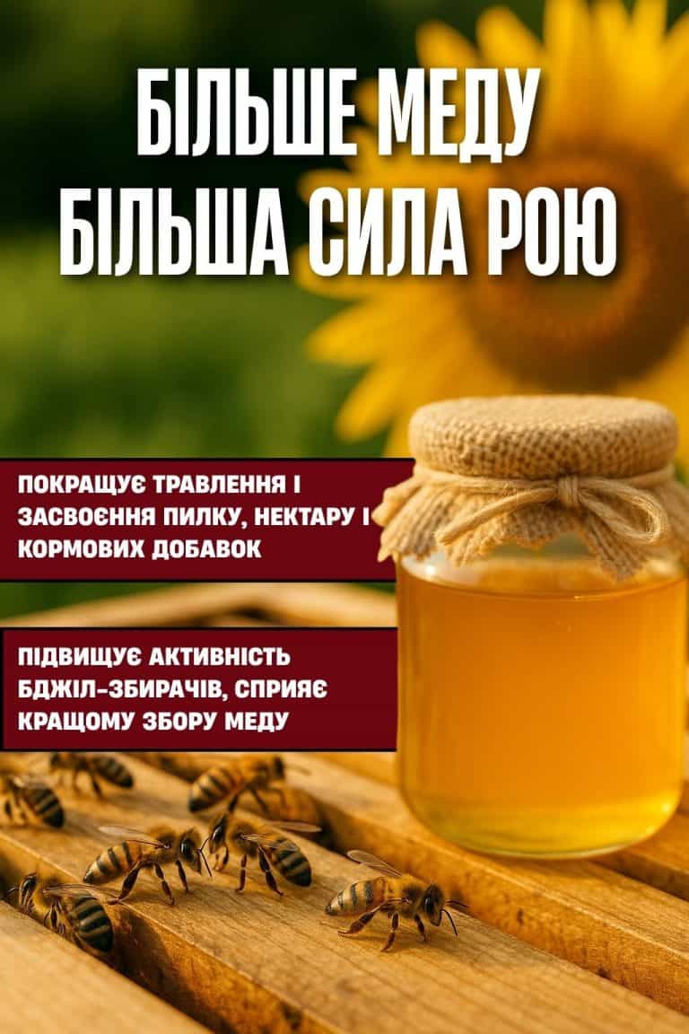 BeeVita підтримує мікрофлору бджіл, зміцнює імунну систему та знижує ризик хвороб. Бджоли легше переносять обробку полів, спеку й різку зміну погоди.
