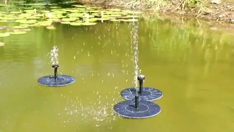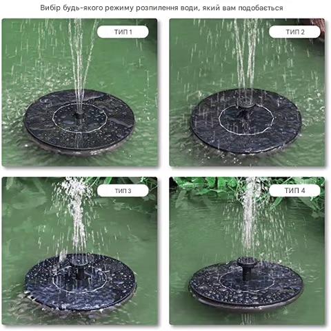 Плаваючий фонтанний насос: Просто залиште насос плавати на воді. Коли сонячна панель отримує сонячне світло, він автоматично запускається за лічені секунди. Чим сильніше сонячне світло, тим краще він працює.