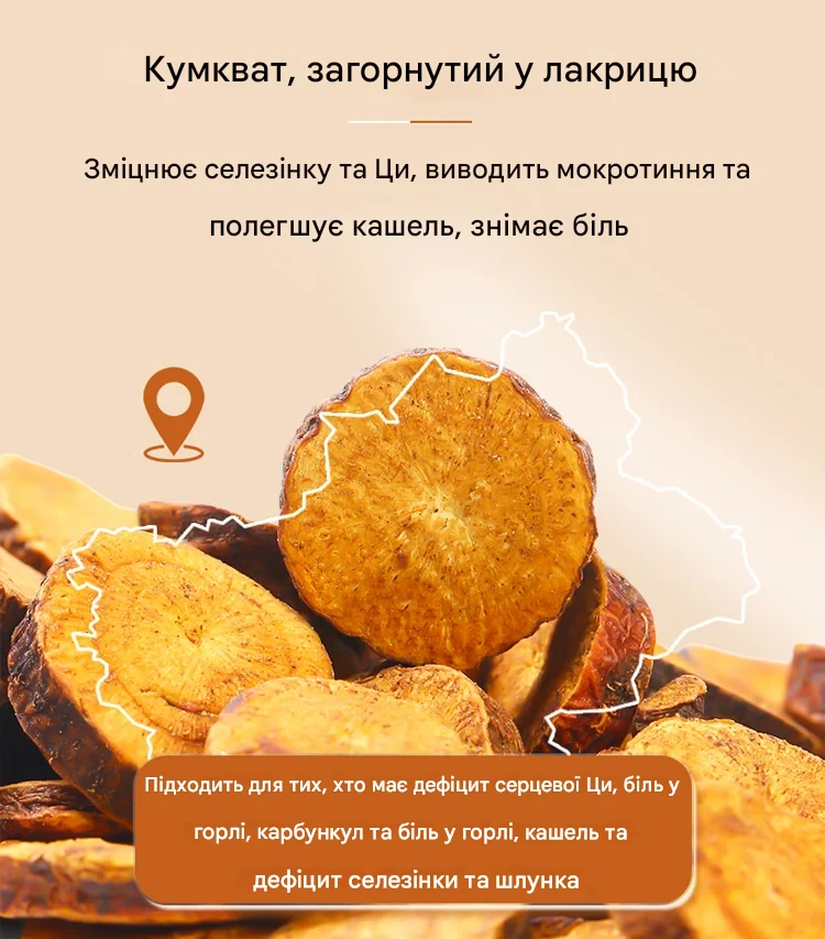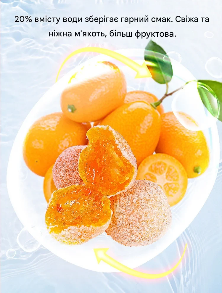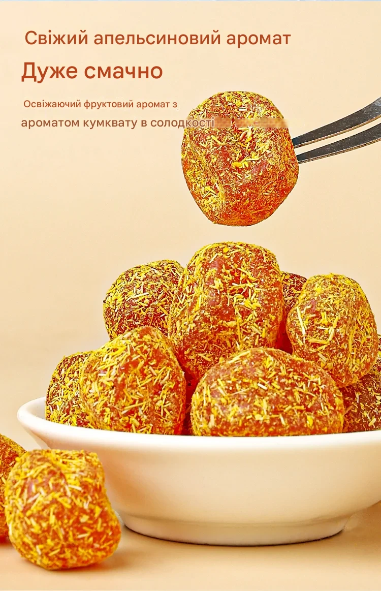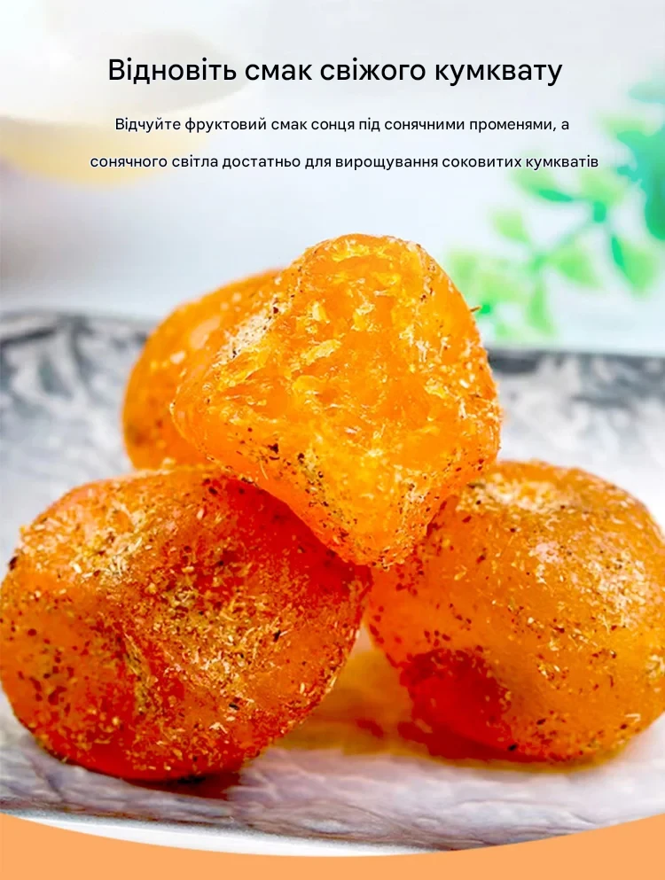 ««Дуже незвичний і приємний смак. Кумкват м’який, соковитий, не пересушений, післясмак довгий і теплий. Добре заходить до чаю, особливо в холодну пору.»»