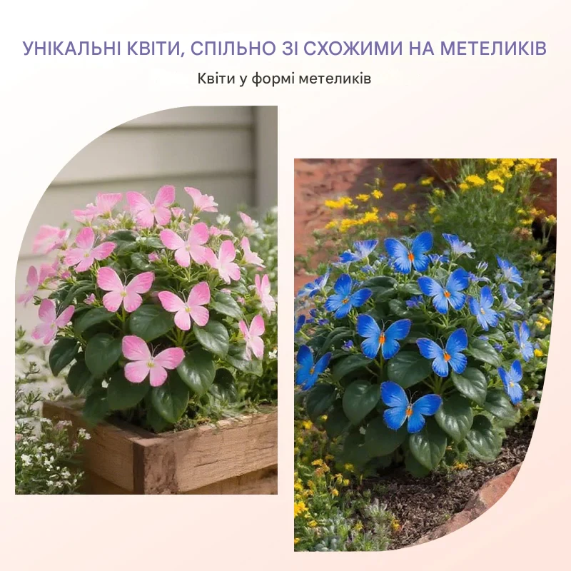 Попрощайтеся з нудними квітами! Наше ексклюзивне насіння перетворюється на квіти у формі чарівних метеликів. Створіть яскравий рій квітів, який залишить ваших сусідів безмовними – ідеальну центральну прикрасу вашого саду, балкона чи патіо! 🎨