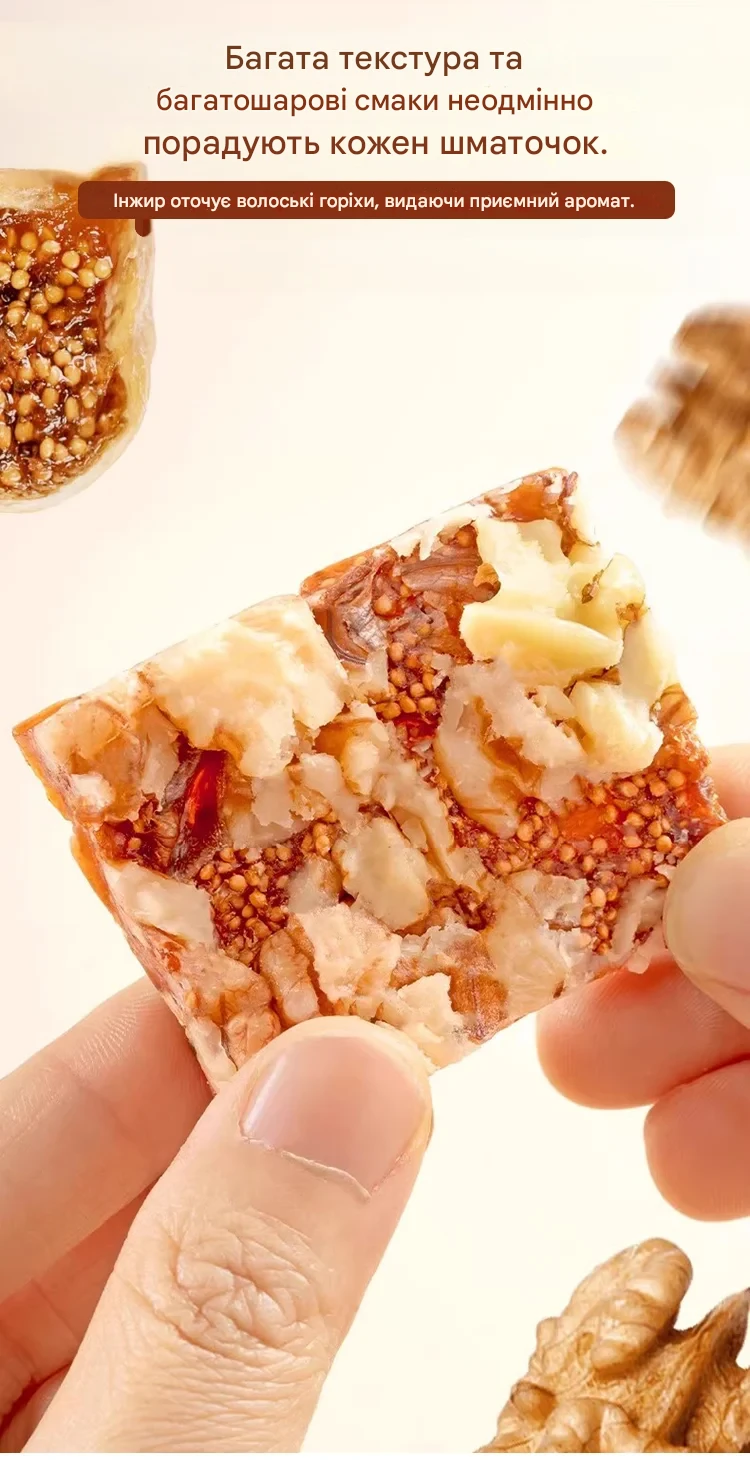 Спочатку я була скептично налаштована, але переконалася, що ці батончики справді смачні! Ідеально підходить для ранкового старту, коли у мене немає часу на повний сніданок. Зручна упаковка дозволяє взяти їх з собою куди завгодно, і до того ж вони ситні, тому я не відчуваю голоду протягом тривалого часу. Без цукру, але все одно смачно!