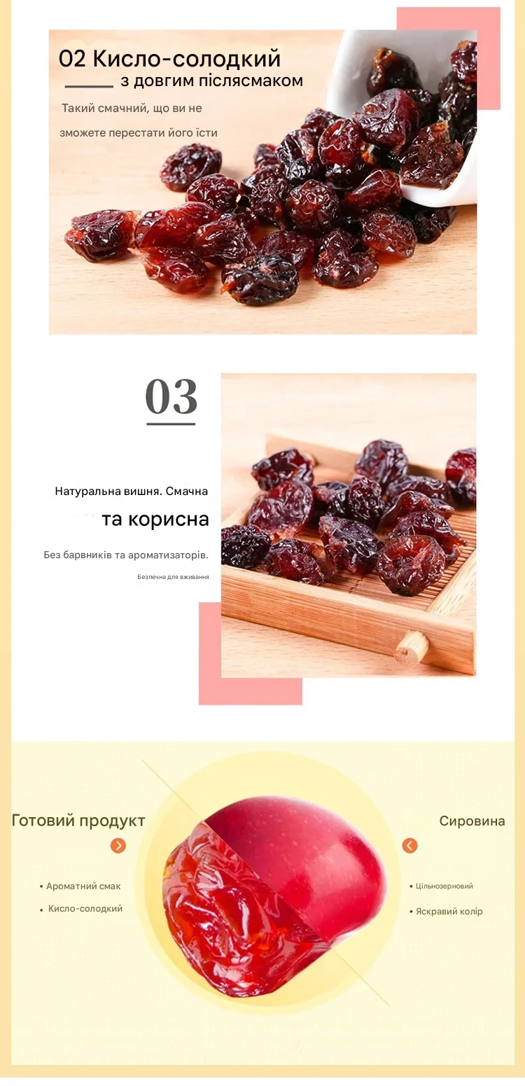 «Приємно здивований! Справжній смак вишні, не пересушена, дуже корисний перекус. »